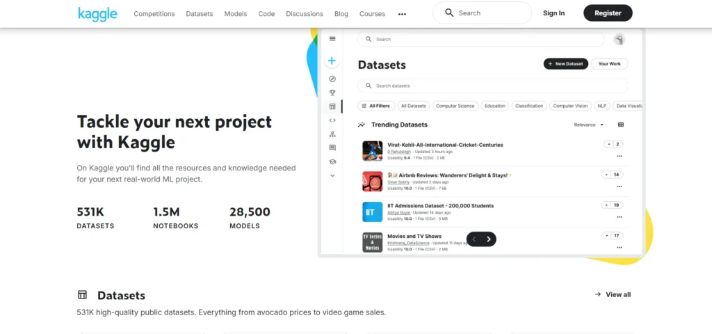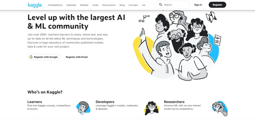 Kaggle’s community is one of its biggest strengths. Millions of users share code, discuss challenges, and help each other grow. Whether you’re building your first model or competing for a leaderboard spot, Kaggle provides an inclusive, hands-on environment to learn, collaborate, and showcase your work in the data science world.