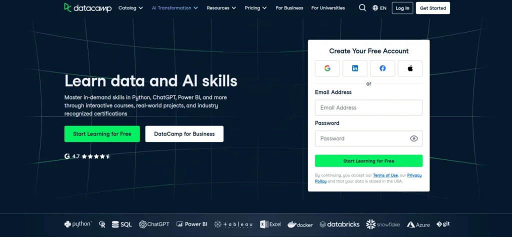 DataCamp, on the other hand, is a platform designed specifically for learning data science, analytics, and programming. Launched in 2013, DataCamp has built a reputation for offering structured courses in Python, R, SQL, machine learning, and other essential topics in the data science field. Unlike Udemy, DataCamp’s curriculum is more focused and specialized, aiming to provide learners with a deep dive into data analysis, statistics, and data-driven decision-making.