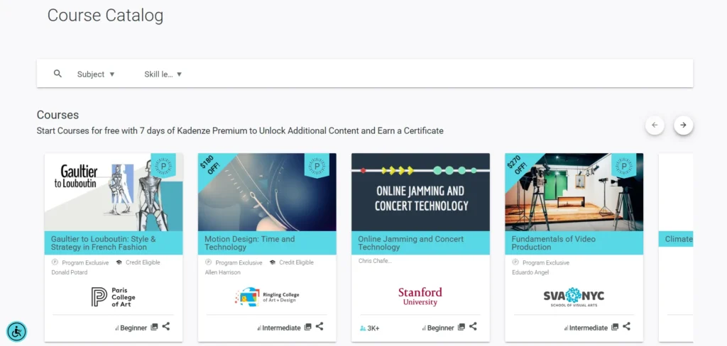 - Academic and Industry Recognition: If you’re seeking a qualification that carries academic or industry weight, Kadenze’s partnership with top universities makes it a strong contender.