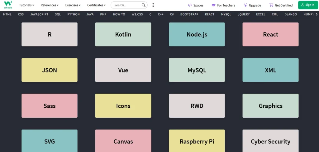 While W3Schools doesn’t always package its content in rigid “courses” like some MOOC platforms, it does create paths or structured tracks in certain areas. Here’s how you might see its offerings in practice: